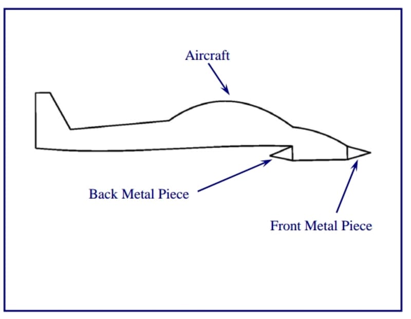 During forward stroke of front piece moves slightly faster than aircraft, relative to air (X+Y) and relative speed of back piece with respect to aircraft is double the forward speed of front piece and opposite in sign [ -2(X+Y) ]. So speed of back piece with respect to air will be same and opposite in sign of front piece [ -(X+Y) ]. In other words; backward velocity of back metal piece is 2(X+Y) (double the forward velocity of front piece in forward direction) the relative velocity of back metal piece in backward direction with respect to air will be same and opposite in sign (negative) of that of front piece in forward direction with respect to air. So sound wave and thereby shockwave produced by front and back piece cancels out if we adjust the distance between them in such a way that both waves are opposite in phase. So there will not be any shock wave. Since actual backward velocity of front piece is same and opposite in sign of aircraft ( –Y ) the relative velocity with respect to air will be Zero. You can place similar system to other parts to cancel shockwave that part producing.