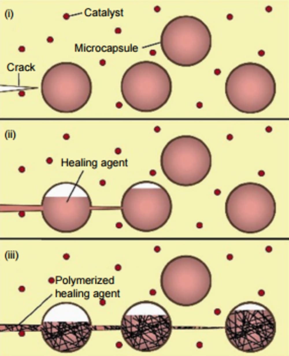 Self healing technology that is used in aeronautical engineering materials has two main ideas. One of the self healing technologies basic is nanotechnology. And another self healing technology basic is biological structure.