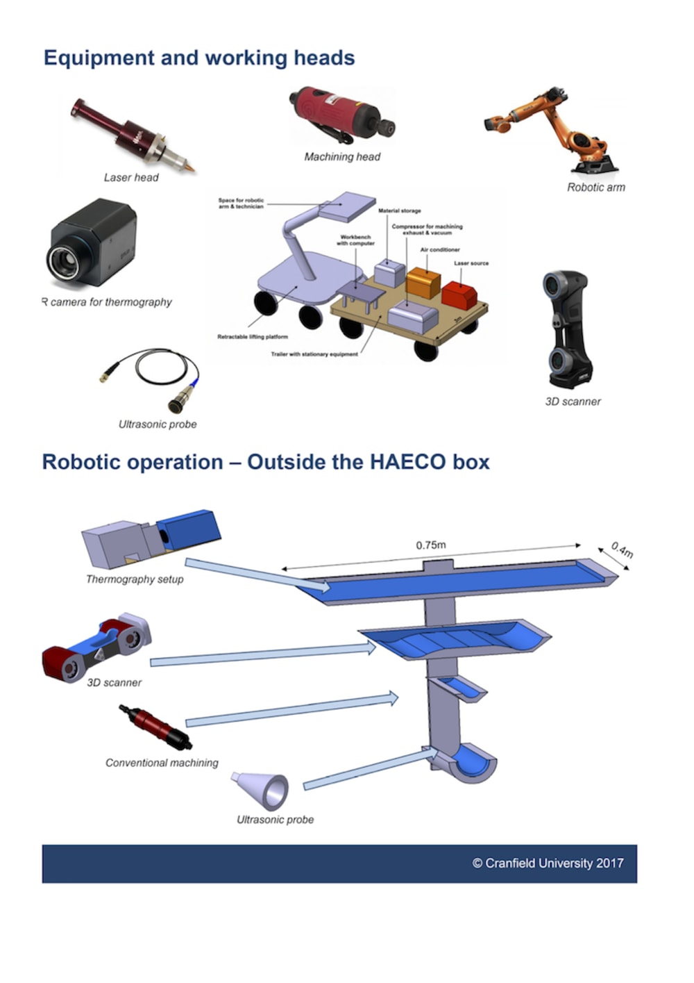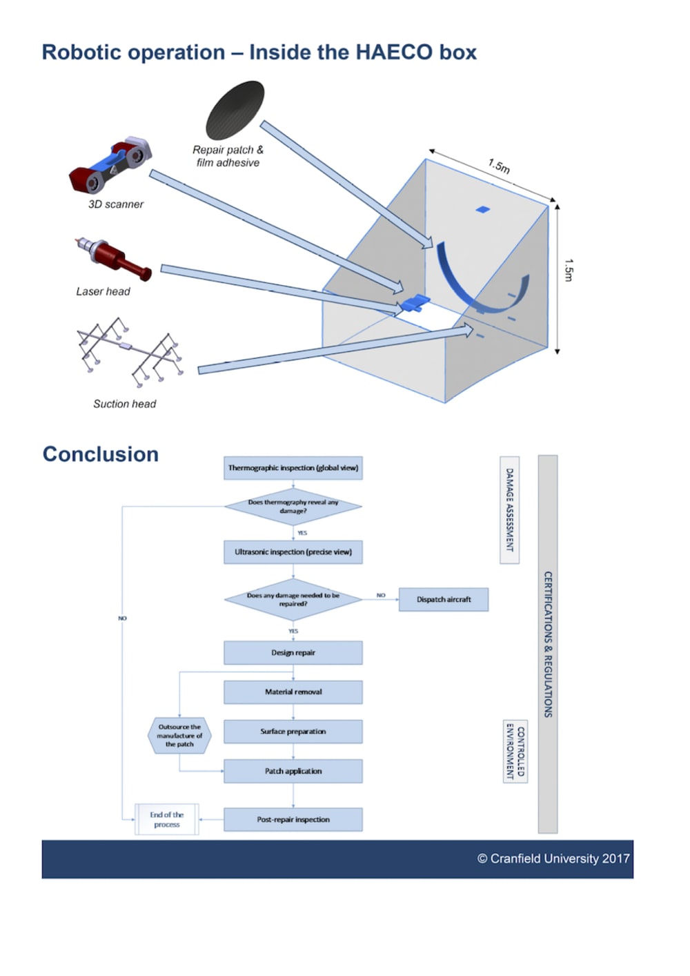Feasibility studies on rapid damage assessment was carried out on two sets of aerospace grade carbon fibre-reinforced polymer composite laminates (representative of fuselage material e.g. in Airbus A350) subjected to low-velocity impact events and containing process-induced bond defects. Then, CAD modelling was performed to integrate all the equipment in a portable assembly platform for aerospace operation (please see attached figure). Finally, cost analysis was carried out to guarantee the economic viability of the design (total cost: £500k). The following steps were then designed to be automated: