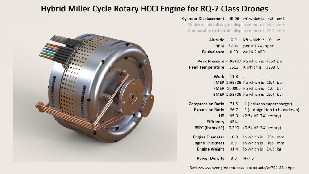 Hybrid Miller Cycle Rotary HCCI Engine for RQ-7 Class Drones