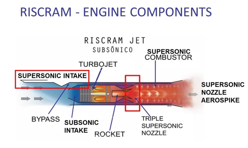 Riscram™ Rocked Ignited Supersonic Combustor Ramjet. Propulsion system for hypersonic aircraft with supersonic combustor. Mach 0 to 30 - Earth Sea Level to Space Exosphere.[1]