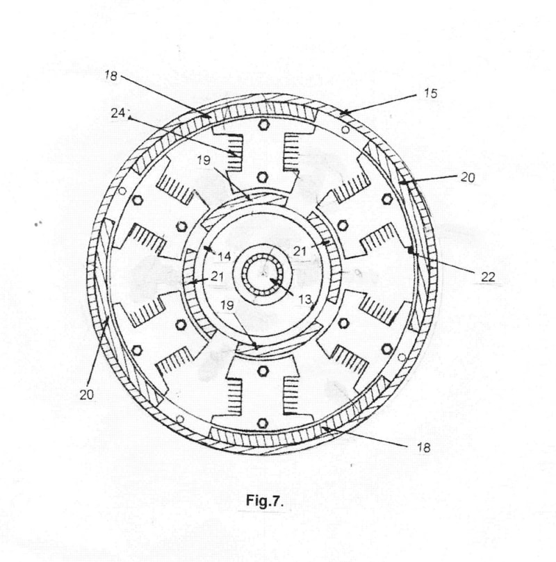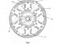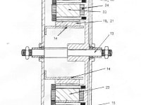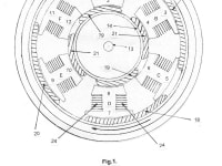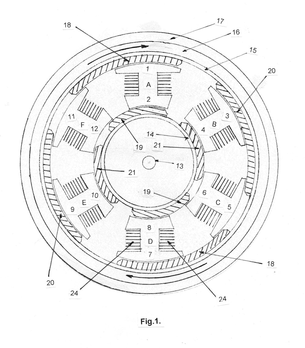 There have been many types of electric gear boxes and clutch systems, but they all use gears to mesh with one another, with friction pads or friction pads for the clutch, they tend to be complicated specialized mechanical equipment, this invention is a unique and innovative way of achieving both, giving a frictionless high performance, low cost, virtually maintenance free way of achieving both applications. By using the technology in US patent no.6.812,615 for an electric motor, which effectively uses both sides of the energised coil. There are 1.2 Billion Vehicles on the Worlds Roads with 253 Million cars and trucks on U.S. roads, plus there are many more application for the use of a gear box and clutches, planes, helicopters, wind turbines and other industrial eqipment are but a few. The system provides a means of forward and reverse propulsion and a means to slowing or braking of the rotor, in a gear box or clutch system in a in hub electric motor attached to a wheel. The system is housed with one part fitted with energised coils, which can also rotate, with the electric current suppied through slip rings, while the rotor is fitted with permanent magnets. To understand this invention if you isolate energised coil A and look at the end 1 Fig.1, and nominate it as a North magnetic pole, the permanent magnet 18 has a inside face of a South magnetic pole, the permanent magnet 18 will be attracted to the energised coil end 1, the permanent magnet 18 is now aligned over the center of the energised coil end 1, the direction of the electric current is change in energised coil A by the commutator or electronic controller, which now becomes a South magnetic pole, and as like magnetic poles repel, the permanent magnet 18 is repelled the inertia of the permanent magnet 18 would also have an effect on keeping it moving in the same direction. That is how an electric motor works, but to under stand how the electric brake works we again look at the energised coil A end 1, which is now a South magnetic pole, like magnetic poles repel, so the permanent magnet 18 would like to be repelled, but is forced in the direction of rotation by either inertia or friction, towards the center of the energised coil A end when it is over the center of end 1, the commutator or electronic controller changes the direction of the electric current, so now the magnetic pole at end 1 is now a North magnetic pole, and unlike magnetic poles attract, but the permanent magnet 18 is forced to move in the direction of rotation as the constant magnetic force is applied to stop the rotation of the permanent magnet 18, it will stop rotating and remain stationary, the force of braking is dependent on the amount of electric current and voltage applied, but it will be equal to the force and torque of the electric motor.
