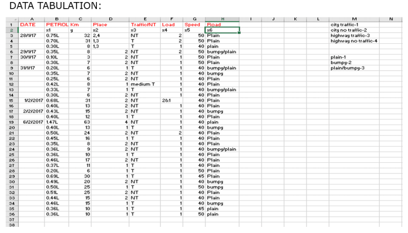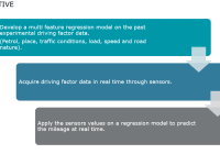 Such an idea is proposed to practically identify the value of the mileage that a vehicle could possibly be able to give. This would enable the person to understand his vehicle’s performance better. There is no proper system to detect the mileage in real time condition. In the existing model, only fuel present in the fuel tank is displayed which won’t be accurate. In this project, we propose a multi-feature regression model on the past experiment driving factor. Predict the mileage in real time by fitting sensor data on a developed regression model. Linear regression is one of the fundamental models in statistics used to determine the relationship between dependent and independent variables. An extension of this model, namely multiple linear regression, is used to represent the relationship between a dependent variable and several independent variables. Developed regression model for the mileage calculation Y=13.2128+50.2500*(x1)+1.2144*(x2)+1.3155*(x3)+1.4744*(x4)+0.1335*(x5) - 0.5913(x6) . Where, as X1-X2 values will the 6 factors considered for mileage prediction. Thus a multi-feature regression model on the past experimental driving data factors is developed. Thus driving factor data in real time through sensors is acquired. The sensor values are applied on the regression model and the mileage is predicted in real time.