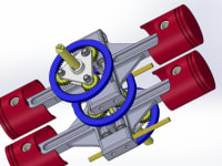 This mechanism allows the purely linear motion of the pistons and connecting rods to be converted to rotary motion by keying one or both output drive shafts to its associated planet carrier to provide one revolution of the output shaft for every cycle of the pistons.