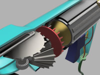 Here I have attached a file which speaks about automotive nail striker. As it's simplified construction, everyone can understand its function easily. As per the law of electromagnetics induction motor can give mechanical output which is further converted into translatory motion. This translatory motion is used to strike the nailhead which is hidden in the spring at the end.