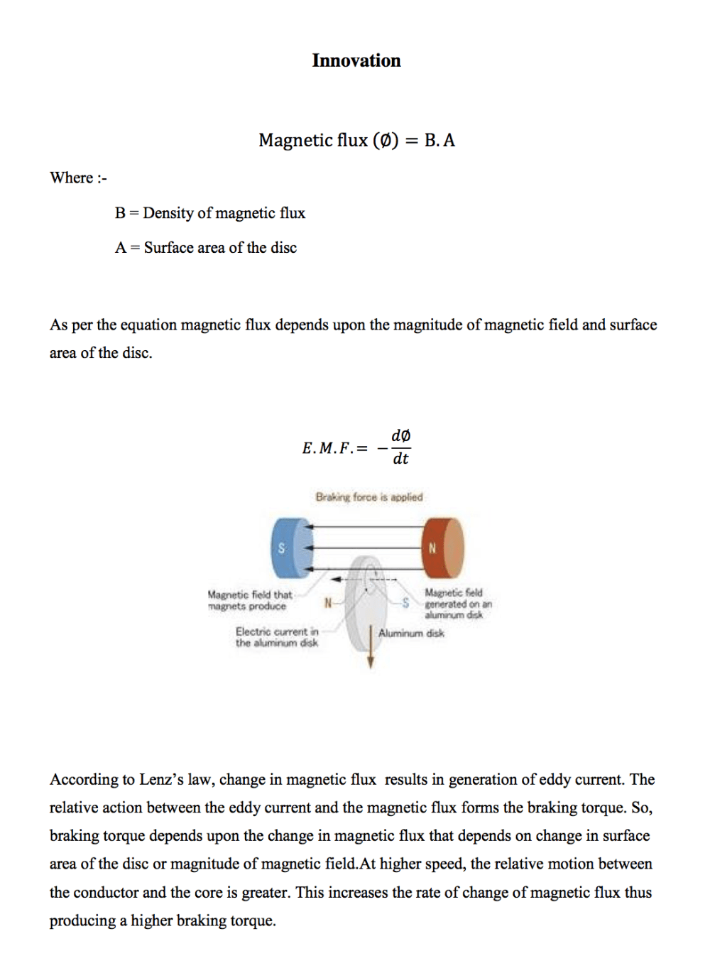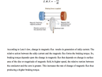 Many of the ordinary brakes, which are being used nowadays, stop the vehicle by means of mechanical blocking. This causes skidding, wear and tear of the vehicle. And if the speed of the vehicle is very high, the brake cannot provide that much high braking force and it will cause problems. These drawbacks of ordinary brakes can be overcome by a simple and effective mechanism of braking system, ‘The eddy current brake.’. It is an abrasion-free method for braking of vehicles including trains. It makes use of the opposing tendency of eddy current. Eddy current is the swirling current produced in a conductor, which is subjected to a change in magnetic field. Because of the tendency of eddy currents to oppose, eddy currents cause energy to be lost. More accurately, eddy currents transform more useful forms of energy such as kinetic energy into heat, which is much less useful. In many applications, the loss of useful energy is not particularly desirable. But there are some practical applications. Such an application is the eddy current brake.