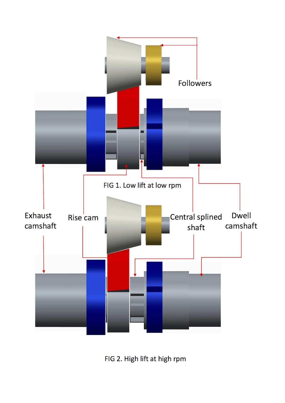 Focus is on the shifting of central spline shaft axially when engine speed is changed, because shifting axially will ensure that different portion of rise cam will come in contact for different engine speeds. This speed can be sensed electronically and then with electronic and hydraulic components the shifting of shaft can be executed. It was required to have separate dwell cam and dwell follower, because if that had not been provided then there will be line contact between cam and follower when valve is to be in seated position. Here if this specific shape of dwell cam is not provided then at the end of rise portion of cam there will be jump of follower and that will lead to surface erosion and lots of noise.
