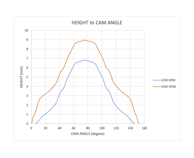 At low RPM: Smaller portion of rise cam in contact, gives lesser lift leads to lesser fuel consumption