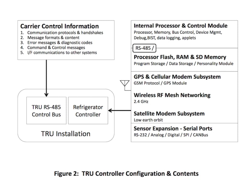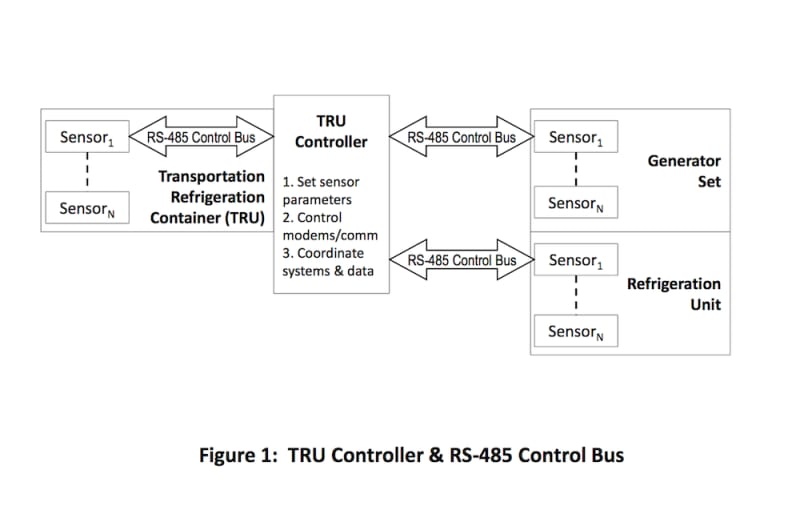The TRU sensors use an RS-232 interface today. It has limitations that are defined by one way communications, subject to external interference, and unable to tune the signal to noise ratio. We propose to upgrade the interface to RS-485 and add a programmable controller to enable two way and duplex communications, provide the ability to adjust sensor inputs and thresholds, communications bus for multiple devices, and change wireless communications means. Our solution monitors the TRU globally from point of origin to destination, optimizing the energy efficiency and maximizing performance.
