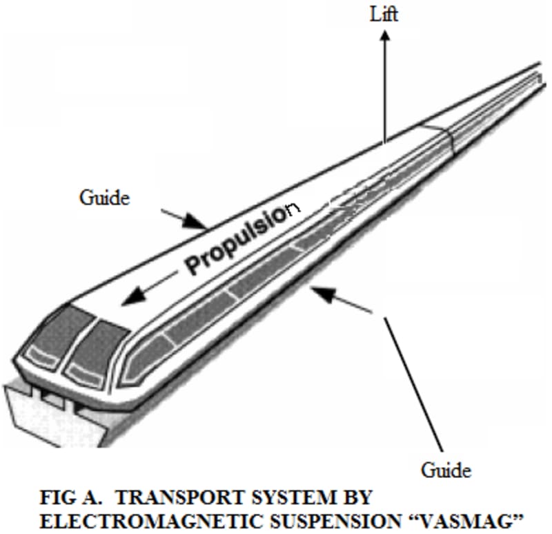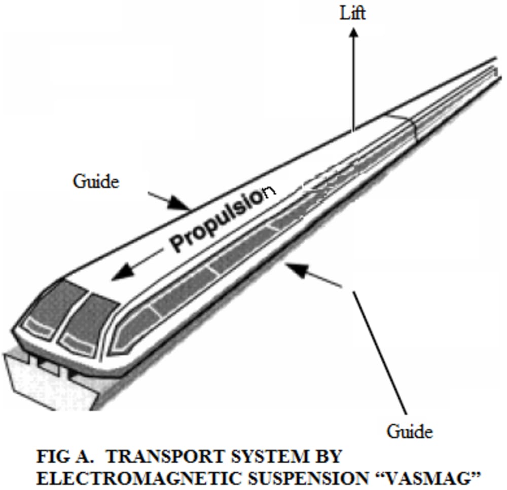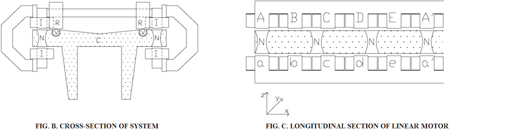 This type of mass transport (Fig. A) can be used in long slopes, uses a linear reluctance motor to achieve the 3 requirements for movement (propulsion, guidance and lift).