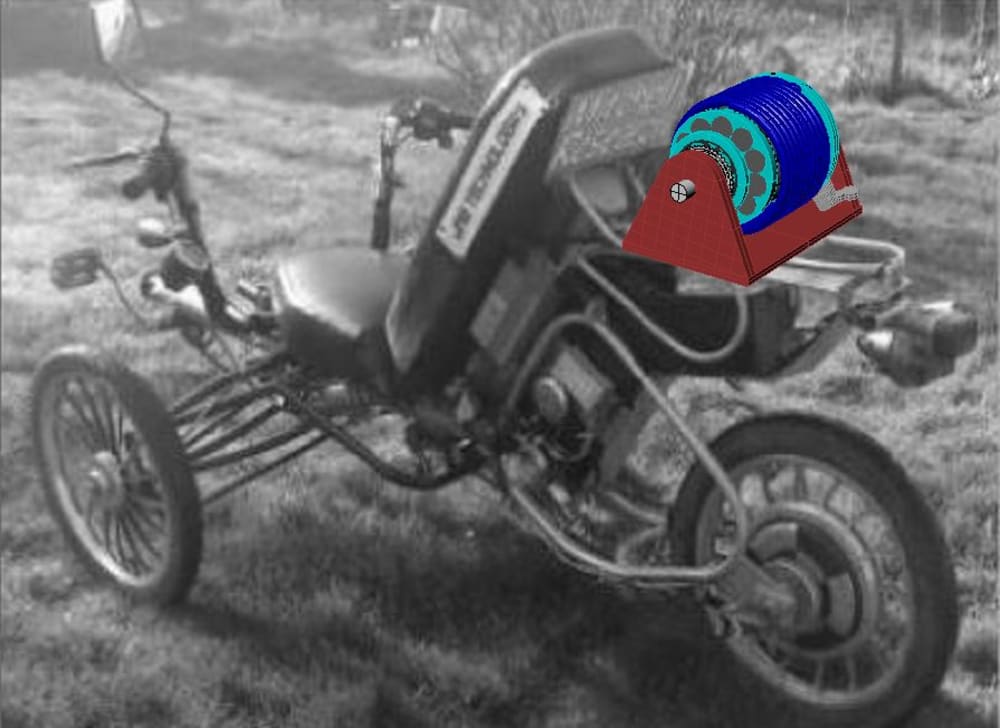 The middle sidebar shows a General Arrangement of the idea and the lower sidebar shows a rendering of the Rubber Motor on the E-Trike carrier.