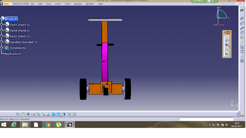 It’s a basic Segway with handle adjustment, which will be easy to balance. Nowadays so many old people struggle to go out, many institutions are making their colleges pollution free, i.e., not allowing vehicles into the campus. So my idea is that to fix a small caster wheel at front to the handle just like bicycle which would help in balancing. Here I’m using two motors to run wheels and a battery to supply power. And using two way power source like electricity and solar panel to charge the battery. Solar panel is attached on top which could be used as shelter as well as one way of charging the battery. At present I’m thinking to use wood as base material which would be light in weight and can bear more weight. It can be used in colleges, hospitals, zoological parks, etc.