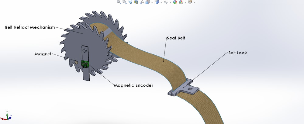 • Intelligent Ignition System (IIS): Seat belts are a primary form of safety in any four-wheeler. But people seem to ignore this form of safety and hence are putting their and other’s lives in danger. ’IIS’ allows the ignition of the Vehicle, only if the seat belts are on. A magnetic encoder is added to the existing ‘Seat Belt Retracting System’, along with a tiny magnet. The encoder records the rotation of the retracting gear and calculates the stretch (the length if belt that has been pulled out) of the seat belt. This way, it can be detected whether the seat belts are applied and hence control the ignition process. Hence it can be assured that anyone how drives any form of 4-wheeled vehicle is using a seat belt.