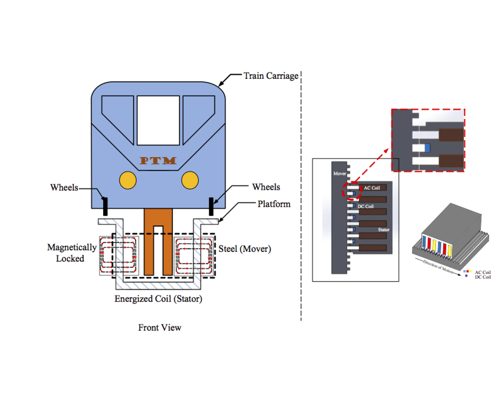 The armature coil is supplied with current and with the help of the DC coil, produces a force on the mover, through the air gap. It is a frictionless system, because the mover and the stator is separated by an air gap, therefore, there is no worry about frequent maintenance due to the wearing out of the system components.