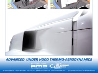 The Advanced Engine Cooling System uses a central radiator plenum, two electric fans and hood duct work to transfer hot radiator air to outside the body - not into the engine compartment. The system uses a full cowl induction hood scoop to supply cool air to the engine compartment and engine air intake system. Then hot engine compartment air is transferred out through the exit ducts as well. This system produces 50% reduction in under hood temperature using only 2 HP to drive the electric fans compared to 60+ HP for the original equipment fan system. There is a 50% reduction in fan noise with fuel savings up to 10%. The system can idle on electric fans using hardly any HP and far less fuel than the OE fan assembly.