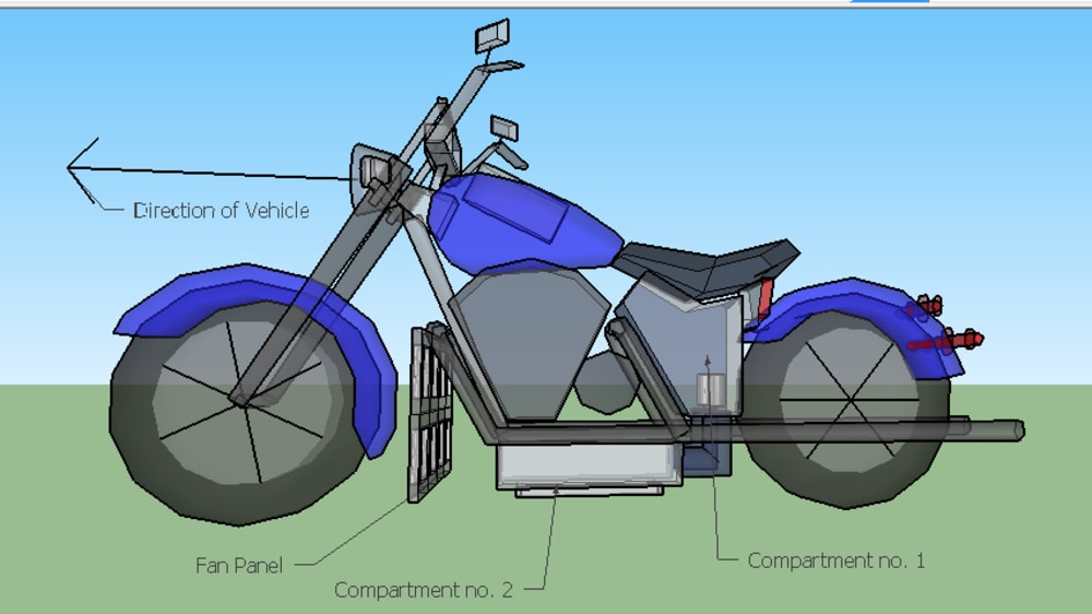 1. Fan Panel: - This panel consists of small fans just like an SMPS fan in CPU. This can be easily mounted on LEG-GUARD of any Bike. When the bike moves in the front direction all the fans will rotate and electricity will be generated, but the intensity of current will not be as required.