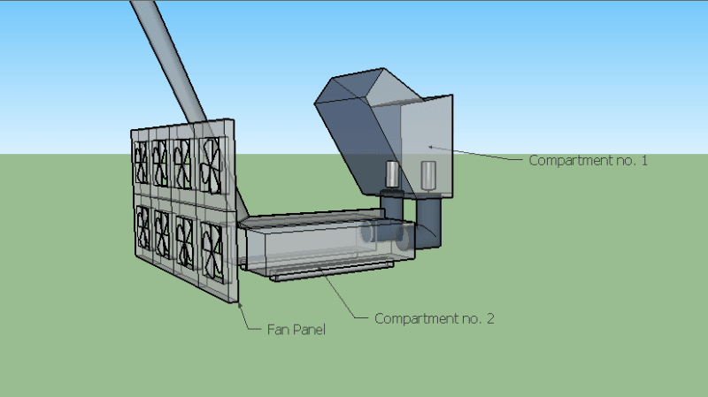 2. Compartment no. 1: - In this, the generated electricity will be directed towards a capacitor or something which will convert the inappropriate current into required parameter. And the motors will now start rotating in anti- clockwise direction to create suction.