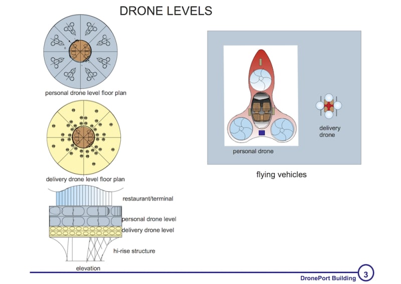 If flying cars and common utilization of drones will become affordable and popular the buildings , and later the cities, must be prepared for their massive introduction.