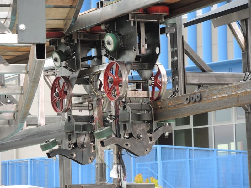The Spartan Superway is different from other railed mobility systems in that there are no moving elements in the guideway. The switching mechanism is contained in the vehicle, and this allows for much higher passenger throughput and more flexible routes.