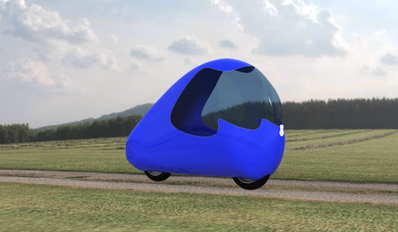 The Velocity EMC has a coefficient of drag of 0.09 and frontal area of 0.695 square meters producing a drag number of 0.063, or one-ninth that of a bicyclist. The streamlined shell, which makes up the exoskeleton, provide exceptional safety as well as the aerodynamic efficiency. Other attempts at producing electric motorcycles used conventional structures and fairings leading to drag coefficients around 1.0 – ten times that of the Velocity EMC. They also require ten times the power and use ten times the energy. The few enclosed motorcycles on the market all use reclined seating positions, which produce tricky handling and long learning curves. The Velocity EMC incorporates traditional rider and passenger positions straddling the seat and steering with handlebars. Riders will feel secure and confident in controlling the bike. Holding the Velocity EMC up while at stops is done by the rider pushing down on outrigger actuators with their feet inside of the vehicle. This action is similar to the rider placing their feet on the ground at stops, as usual.