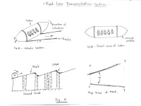 A rigid track is provide for transportation of cabin which is inclined at specific angle. Cabin is allowed to move freely on track. Cabin is designed in such way that the center of gravity always acts in front of fulcrum which will produce moment in clockwise direction as illustrated in fig B which will produce enough force to rotate the component in clockwise direction or to climb the slope. This cabin is used for transferring human or goods from one place to another. The angle of inclination and weight of goods will decide the speed of the cabin. Since the rotary motion can affect the human comfort and goods condition, the bearing is provided at the end of cabin as illustrated in fig C. This will give the stationary comfort to cabin structure or passenger without any whirling. Speed of cabin can be controled with the help of braking system or by adjusting the height of tracks. The angle of inclination of track directly affects the rotational motion, linear speed and direction of movement of cabin. If we slightly increase the inclination angle of track, cabin will not move in forward direction; it will slow down and start moving in backward direction. Hence we can control the cabin motion with help of track in emergency conditions. The natural slope of earth may be used for track elevation which will minimize the cost for elevation installation. Since this system do not require any kind of fuel or electrical energy to move the cabin from one place to another, it is most efficient and eco-friendly transportation system compared to present technology.