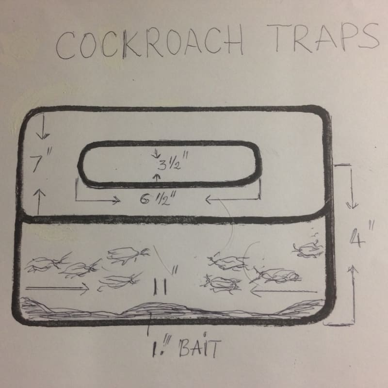 I had made cockroach traps. Have been using for 2 years. The product worked great. Here is the details how to make it. You need 3 or more empty food containers from 99 cents store-target - walmart. Size 11 l x 7 w x 4 d. Then cut the hole on top [the lid ] 3 1/2 x 6 1/2. Size can be changed. Smaller or bigger. But bigger is better. Note [too small a container does not work.] The best baits are fried fish - fried chicken - sandwiches. ...Cut or tear them small pieces. Place the baits in corners and center 1 inch high. Lay the containers anywhere that you have a roach problem. Near to trash - kitchen - stove .... Where the space circulates air. Not in an enclosed space. Or a stuffy corner. You could but it not work well. The roach will jump in. But cannot jump out. That is the point - any time. The best at night time. In the morning you will see a lot roaches in there. Just open the lid then pour hot water to kill them. It works 100%. Guarantee. After a month all pets gone with good take care. Keep the space clean. No food around. This product is save for children - save your money - you will be happy! Thanks for reading.
