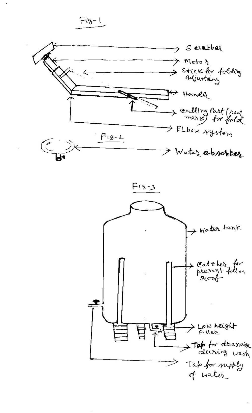 For it, an automatic, hand shape (elbow system), light weight rubbing machine is to be make. Any part of water tank can be rubbed by folding system of this scrubber without entering into the tank. An extra tap to be fitted at the bottom position of tank for outlet of waste water for washing after rubbing. After drainage of the waste water from the tank, then an absorber to be fitted with the motor replacing the scrubber. The absorber will absorb the remain water and drop out the water at outside of tank. Thus the water tank will be washed and dry.