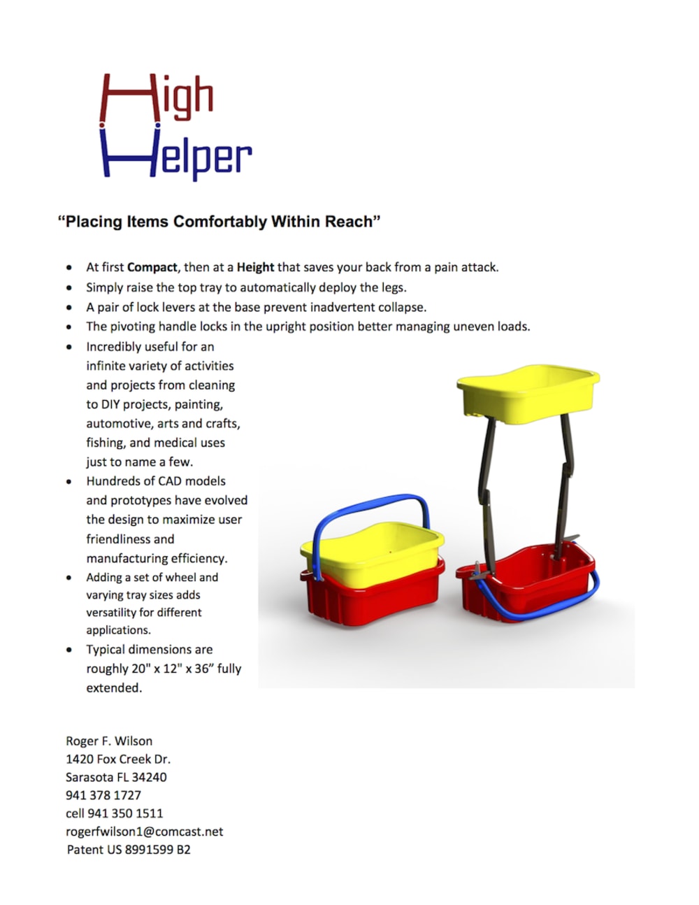 Enter the the High Helper, the first and only pop up tote that places activity items comfortably within reach. It quickly transforms from an easy to carry compact size to a convenient working height that eliminates bending to retrieve items off the floor.