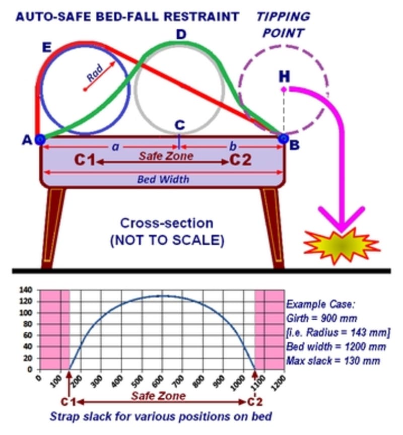 When the strap length has been adjusted to calculated safe length AEB, user can confidently go to sleep without the least fear that he will roll over the edge while he sleeps.