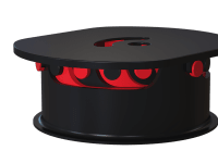 The stool consists of 8 concentric stages. Each stage has a hollow cylindrical shape. These stages form the height of the stool. The stages are arranged in the increasing order of their diameters from top to bottom with the smallest stage at the top and the largest stage as the base. The stage is the building block of this stool. Each stage is comprised of 3 sets of locking mechanism arranged 120 degree apart from each other. The locking mechanism is what helps to operate the stool. The locking mechanism includes an ‘L-slot’ and a ‘pin and hole arrangement’. The pin slides in the slot thus providing the translation and rotation motion which is required for the operation of the stool. The pin when translates in the vertical part of the slot provides the height whereas the pin motion in the horizontal part locks the consecutive stages which in turn locks the entire arrangement.The stool has a seat on top which is integrated with the topmost section. The seat incorporates a handle for easy use of the stool. The largest stage has a web around its circumference for a larger base area thus providing better support for the stool.