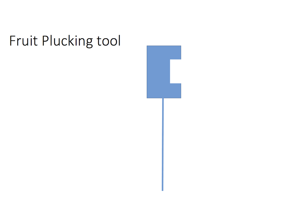 Simple plastic bottle cut in C shape with V on top to help pluck the fruits and flowers.