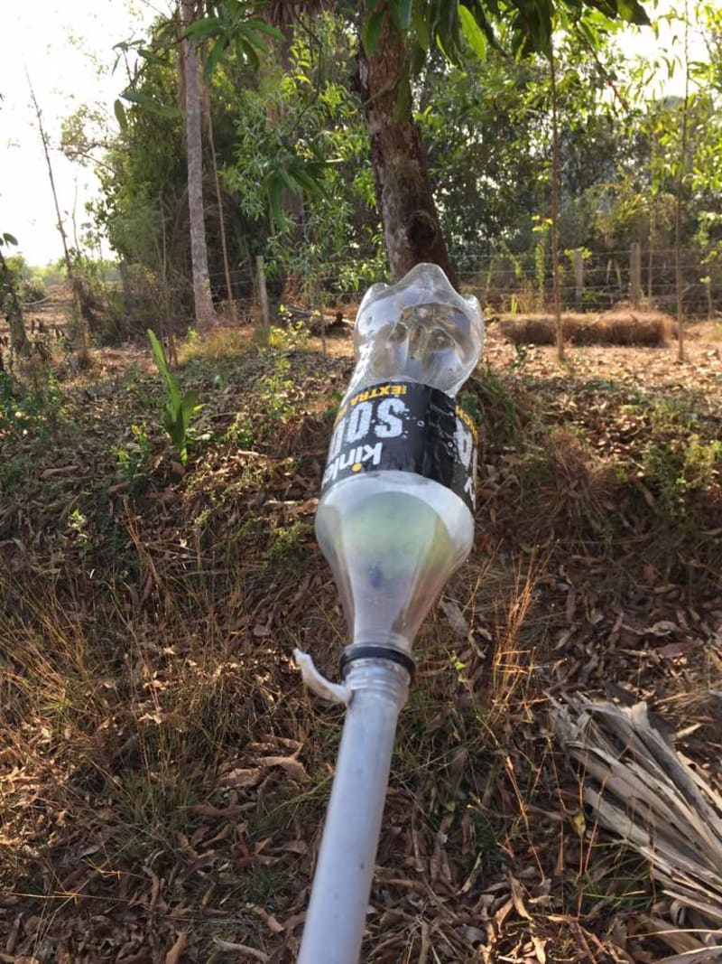 Used plastic bottle that we normally through away can be modified and fixed to a Bamboo or stick or old plastic pipe and used to pluck fruits, flowers.