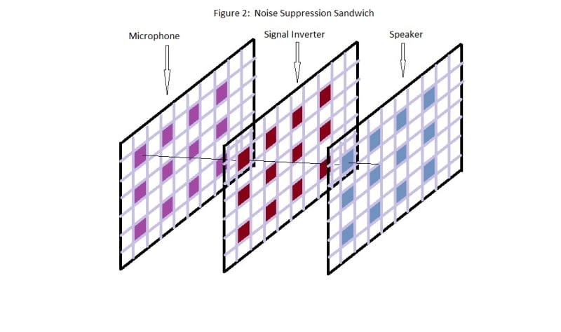 This invention is made by making a fence with active noise suppression. The invention requires a power source and separate weatherproof microphones, speaker, noise cancelling circuit arrays and weatherproof terminal electronics enclosures. The first step is to build a fence along the property line that faces the noise sources which is usually traffic. Mount speaker array on a thin wire rope mesh net mounted in a tensioned frame (Figure 1). This may be made of, for example, tensioned stainless steel. The same is done for the microphone array and a noise cancelling module on a third mesh net in between the other two. These three tensioned mesh girds sandwich together to form a noise suppression panel (Figure 2.) Wiring mounts to the wire mesh and terminates at the frame which contains preamps and active noise processor power supplies. Mount these frames such that the speaker arrays face the housing structure (Figure 3.) Mount microphone array facing the noise source along the fence behind the speakers connecting each microphone/speaker with noise cancelling circuit in between. These grids are aligned to allow vibration isolated connection between each microphone, noise suppression circuit board and speaker. Use the weatherproof electronics enclosure to house an amplifier and noise cancelling power.
