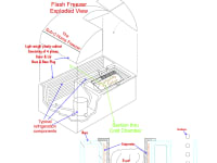 My patented flash freezer is not just an improvement on an aspect of refrigeration, rather an entirely innovative approach to enabling the home cook to freeze their favorite recipes and store for later use, without sacrificing taste. To accomplish this, all aspects of the refrigeration process have been scaled down into a unique and economical flash freezer for the home. While 0⁰F is sufficient for storing frozen food, it is not cold enough for the initial pre-freezing temperatures necessary to flash freeze.