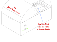 The “Sub-0 Home Freezer” is an occasional use, domestic, counter-top flash freezer. All commercially frozen food is flash frozen today. Clarence Birdseye discovered how flash freezing preserves the pristine qualities of fresh food by minimizing formation of large ice crystals, and thus preserving the taste. This technology has not been available to the consumer, until now!