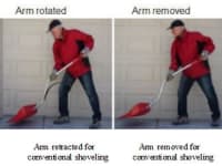 The Flipper is intuitive. Grab it by horns, push forward to gather a load, push down. It's gone! Not only can you easily fire snow up to 20 feet, you can also direct it to the left or right, plus also vary the throw to achieve either height (like over high snow banks) or horizontal distance. One-handed use allows even amputees to shovel, and its stand-up design means no more bending down to pick up your shovel.