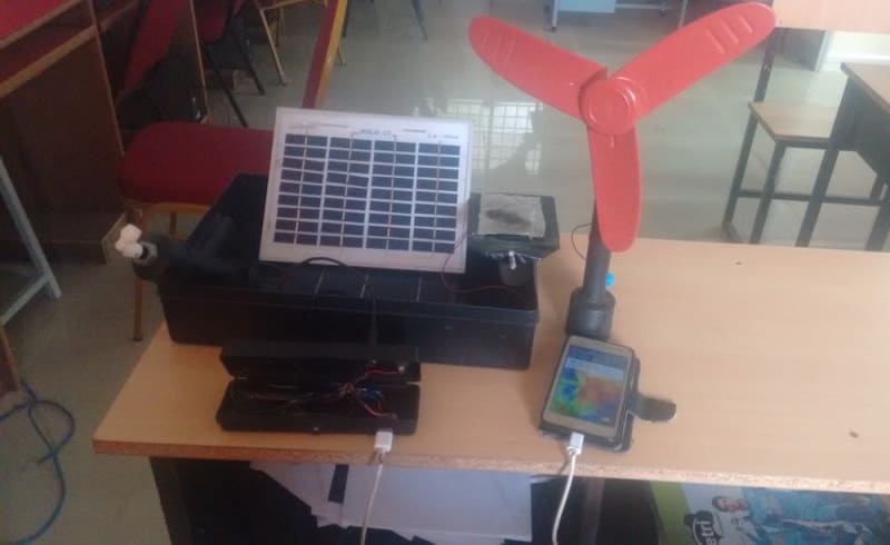The hybrid mobile charger that we have developed is composed of solar, wind, handcrank and peltier effect. So if any one of the sources is available then the charger can be working, so as the communication device can be charged. Also it can be used as a power bank too. All USB based devices can be charged using this hybrid charger.