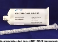 The EB-135 has been tested and approved by NASA to ASTM E-595-07 with both room temperature and various heat cures. It is an excellent optical material with high transmission from 350 to 2500nm with very low florescence. It has a low cure shrinkage and has been used in fiber optic terminations including bonding of PM fibers.