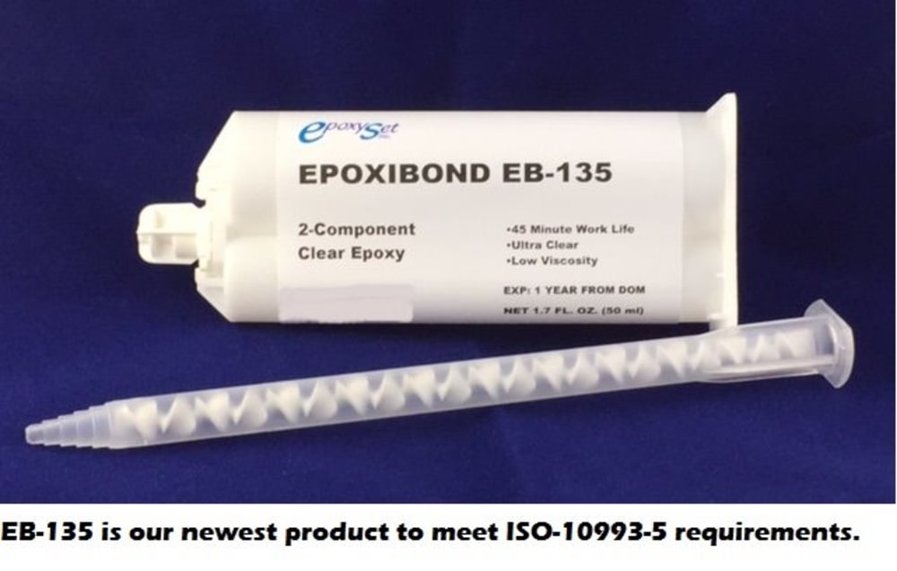 It has been certified to ISO-10093-5 for medical device applications. The chemistry of EB-135 has also been used in short term implantable devices.