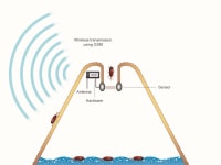 a) photo-interruption of either entering or falling insects in several types of traps (e.g. Red-palm weevil traps, pitfall traps, funnel traps, beehives). A low power emitter of infrared-light and a coupled photodiode form a sheet of light covering the entrance of the trap. The flow of light is interrupted from an entering insect and thus it is counted,
