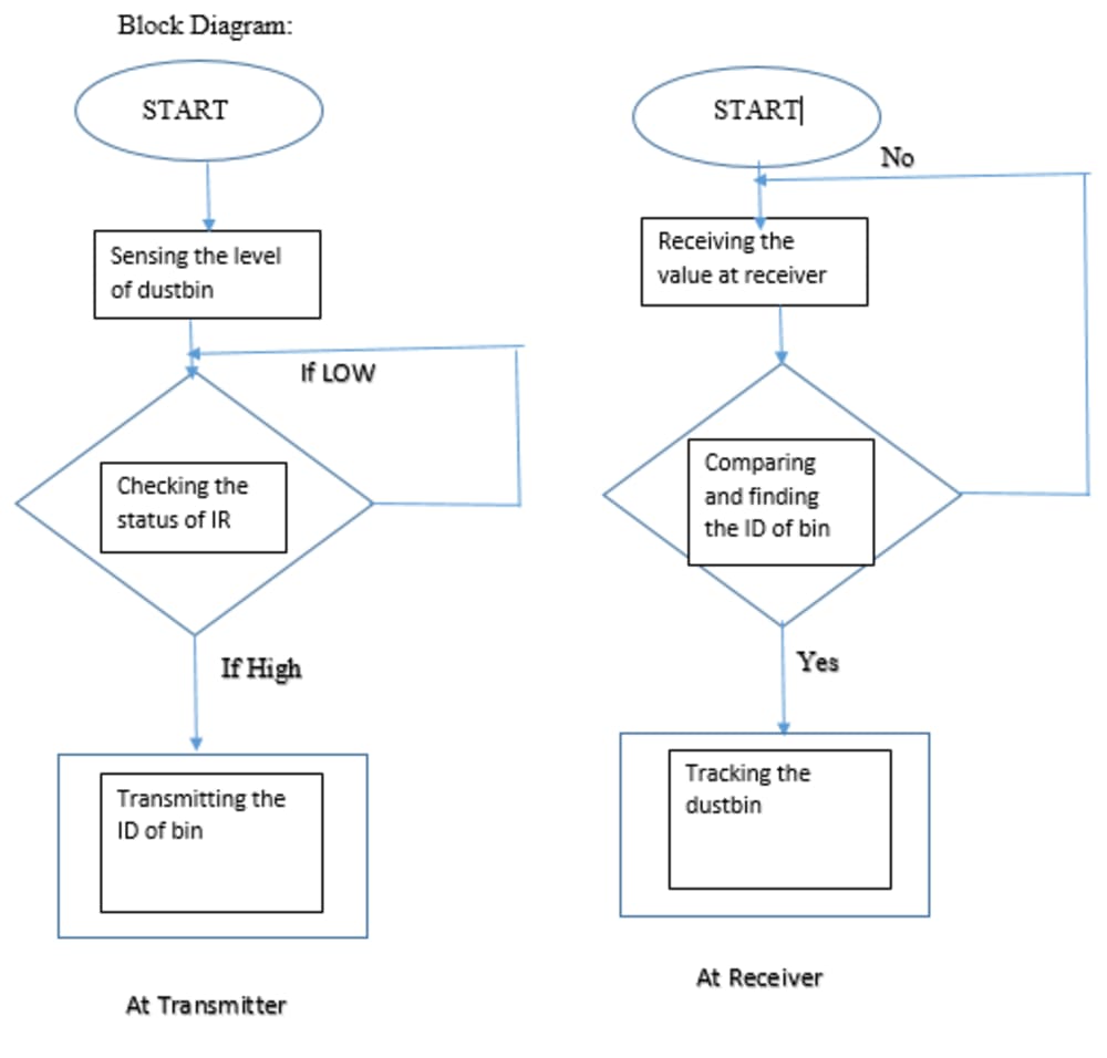 The idea is to manage the smart bin by monitoring the status of the bin and sending this information to the control unit that signals the robotic car to take the defined action. There are multiple dustbins located in the city and these smart bins will be interfaced with the microcontroller with IR sensors. The IR sensors will detect the level of solid waste in the bin and microcontroller sends the information to the control unit. The control unit will signal the waste collector robotic car to empty the bin.