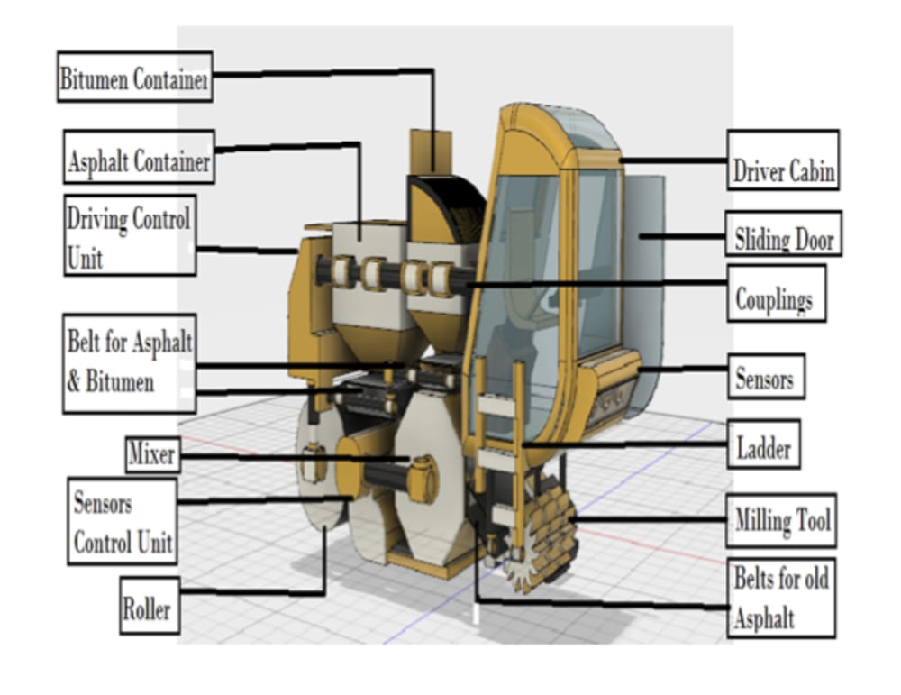 So instead of just keeping on changing the material we are using to avoid the problems, we can change the technology we are using along with the material. By saying this I further suggest the idea of a machine which can be implemented for road construction, I call it 'LIDAR Road Paver.' It is the new generation technology which make use of LIDAR sensors for mapping of uneven road profile. There is a milling tool at the front of the paver to remove the previously layer asphalt for reuse. The removed material is transferred to the mixing container using moving belt. The height of milling tool can be adjusted according to the requirement. Also there are containers attached to the paver containing fine crushed stones and a container having bitumen in it. There is heater to keep the bitumen in melted state which is necessary for paving. There are height sensors at the top end of the containers which are helpful in precisely measuring the flow of material out of these containers. These outflow material is released in a mixing container using rotating belts. Now here in mixer, the whole thing is properly churned together to make it one proper unit for paving. The most important process starts further. The LIDAR sensors have scanned the road surface and a computerized map is created this data is given to the gates at the base of the machine to precisely control the outflow of material.