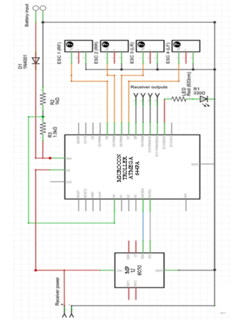 The system design is divided into two sections, Transmitter and Quad Copter Section. Figure shows different blocks in transmitter section and quad copter section and the block connections. Transmitter and Quad Copter communicate with each other using 2.4GHz bandwidth signal in free space. The range of communication is limited. It is dependent on the gain of the transmitter and sensitivity of the receiver.