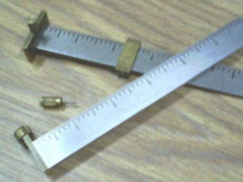 The rule can be produced economically by possibly fine blanking or gang saw cutting multiple units on a horizontal mill, thus producing dozens of parts with a single pass of the tool.The units are then laser marked or photo chemically etched. A T- slotted piece may also be employed to act as a caliper.