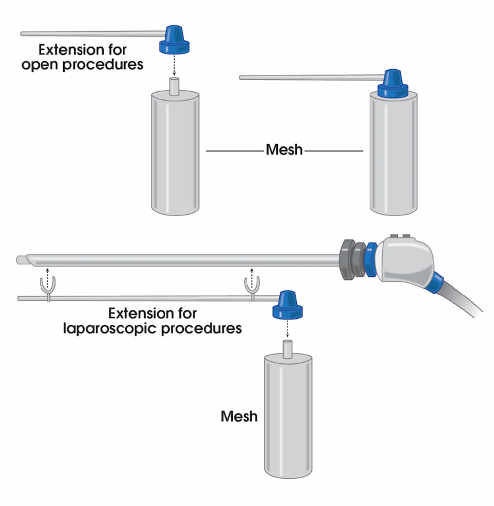 To address these issues, we have introduced a novel liquefied mesh delivery system. The Mesh Sprayer Device (MSD) affixes liquefied sterile mesh into the abdominal wall and thoracic defects. MSD delivers a layered homogenized liquid which will change into a solid/semi-solid form following delivery and creates a medium for reinforcement of the abdominal wall and viscera at the site of entry and functions as an alternative to currently available surgical meshes. The spray canister can be fitted over a laparoscopic/robotic camera or other instruments. MSD can be used for placement of mesh in the open repairs too which includes spraying a layer of mesh over the required surface. MSD is usable in every case of abdominal surgery and by laying an extra layer of support will simply prevent the risk of future hernia formation at the site of facial closure. MSD reduces the mesh handling time, operation time, mesh contamination, wasted material, wounds infection rates, and the costs to a minimum and will ultimately improve the patient satisfaction. The placement of this mesh for open, laparoscopic, and robotic techniques are very easy and includes only one step of spraying the surface. MSD does not need precise size measurements and it eliminates the need for clips/sutures/tuckers/glue placement and potential misplacement. MSD would potentially reduce the risk of early or late hernia recurrence and or associated long-term pain associated with mesh or clips/sutures/tuckers/glue misplacement.