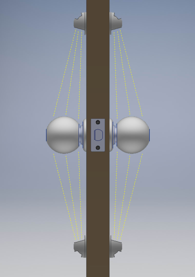 The UV LED will be turned on for a short period of time in set intervals unless human presence is detected. If human presence is detected the UV LED will not activate until a reasonable amount of time after human presence is no longer detected to avoid a human being exposed to UV radiation and the system will continue its normal cycle. If human presence is detected during UV operation the UV LED will be turned off immediately and follow the aforementioned procedure to ensure the door knob is exposed effectively. When low lighting is detected the white LED will illuminate the door knob so it can be seen in low light environments. Human presence will be detected by a motion sensor which can detect if the door knob is being operated. The solar panel will continuously charge the batteries using any ambient lighting that may be present, unless the batteries are already full.