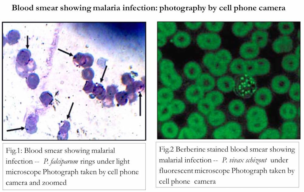 The key to effective treatment and management of malaria in the field is rapid and accurate diagnosis. Under or over diagnosis eventually complicates the problem of malaria worldwide (total 212 million new cases and 429,000 malaria deaths in 2015)[1]. Despite advances viz. rapid diagnostics tests, fluorescent-based QBD-method and PCR are introduced, microscopy of the Geimsa-stained blood smear is the gold standard. Besides its cost-effectiveness, sensitivity and accuracy are merits of microscopic diagnosis. However, requirement of good quality microscopes and expert microscopist is a limitation, especially in rural part and small towns of developing countries.