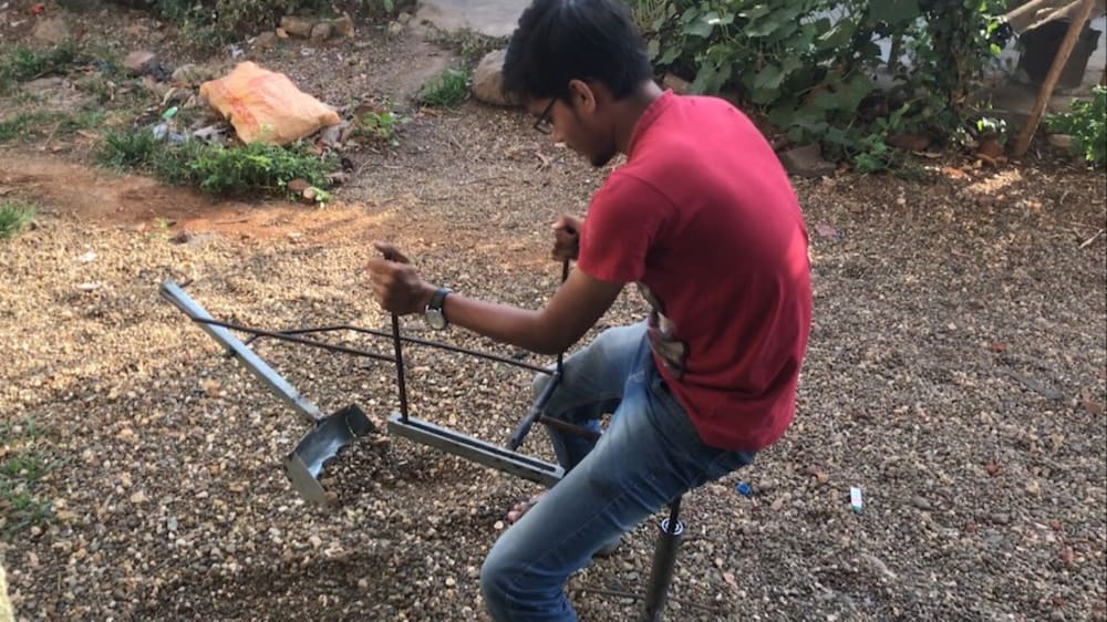 This project for community services represents the designing and development of an alternate excavator arm which can be used without the electric supply or by consumption of fuel at a consistent turn. The project primarily aims at bringing the engineering technologies and innovative designs at the easiest disposal of the community to reduce efforts of the people to simple day to day activities and also to reduce time to do a specific task with the least efforts. Therefore, efforts have been taken to keep in focus the conventional objectives of the project, and a sustainable model with the no intervention of electricity or fuels, in the working principle of the excavator arm, which is a combination of mechanisms to construct the arm are used. The single most important pre-requisite for this project is its portability and varied large scale application. The prime mover to develop this mechanism lies in the objective towards green manufacturing and eco-friendly environment. The main objective of this project for which it was designed for, is to ease the process of plantation of saplings and dig the soil up to 3 feet. However, it can also be used for a variety of other applications such as cleaning of highly viscous oil deposits on the beaches, cleaning of weeds at the outskirts of a farm, softening the soil of farms, burial of animals and waste foods for decomposition, etc.