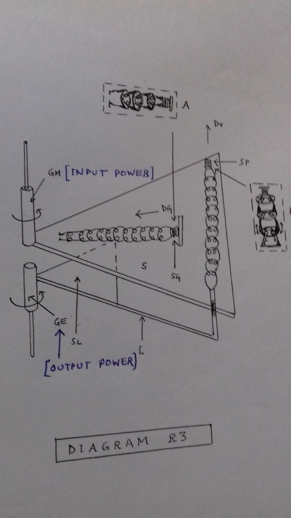 If the arrangement is connected between an electric motor and an electric generator as shown in the figure caption above the output power will be more than the input power as it's the load or resistance of the generator which pushes on the electric motor first with respect to the rest frame of reference and looses mass and rest energy.The mechanism can be modified for warp drive, time reversal and real time travel to the past with respect to the rest frame of reference.