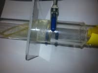 The first illustration shows the ability of the fabric to absorb small amounts of spilled oil. An apparatus was rigged that placed nylon spunbond between two "O" rings. An oil and water mixture was introduced on the inlet side. Water with no oil was on the exit side after the fabric. The second illustration shows a fence made from a heavier, thicker nylon spunbond fabric deployed at a spill site. Water with no oil is on the downstream side of the fabric. The video shows how the nylon spunbond fabric removes 5W 30 oil and oil sheen from water.